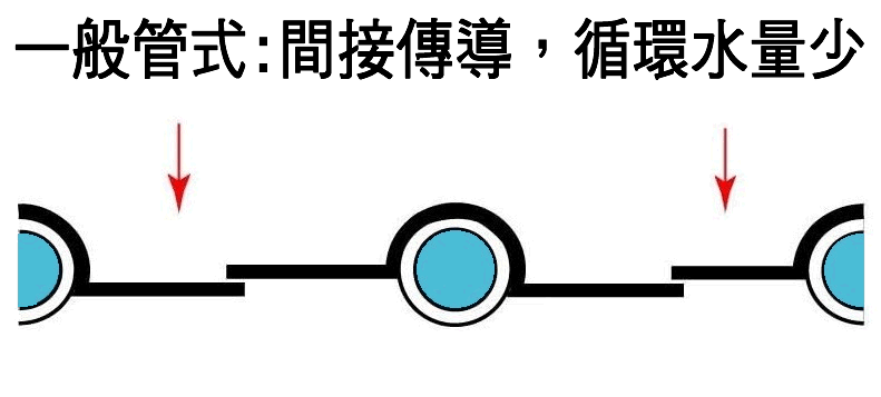3. 三久首創專利熱分層管設計,引導熱水至儲水桶頂部,拉高冷熱水溫差,提昇集熱板吸熱效率。