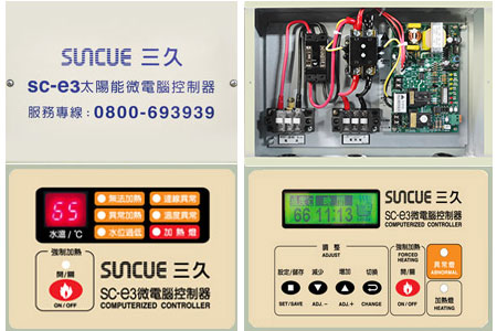 選購配備 首頁 產品型錄 選購配備 全自動電熱輔助器 電機式控制箱 微電腦式控制箱及操作盒 一個控制箱可搭配多個操作盒,於各樓層操作使用。 功能比較 功能設定 室外 / 電機式控制箱 室內 / 微電腦實用型操作盒 室內 / 微電腦豪華型操作盒 設定加熱時段 (可設定多時段) - 設定加熱溫度 - 室內顯示儲水桶溫度 - 強制加熱 - 設定禁止加熱 - - 異常狀態顯示 - 操作說明 - - 安全設計 開放式防爆保溫桶、無熔絲開關、漏電斷路器、溫度控制器、超高溫斷路器、定時控制器、防空燒低水位斷路器 註:電熱輔助器標準品,配備 4KW 電熱管,可另選購 6KW 電熱管使用。